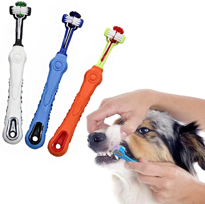 Three Sided Pet Toothbrush Multi-angle Toothbrush Cleaning Dog Cat Brush Bad Breath Pet Dental Care Cat Cleaning Mouth